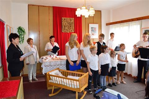 Po uvítání všech přítomných zazpívaly několik písní děti z Loužné, pod vedením paní Jany Vopalecké. Rodiče svojí přítomnost potvrdili podpisem do pamětní knihy a jejich ratolesti obdržely malý dárek.