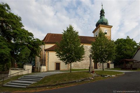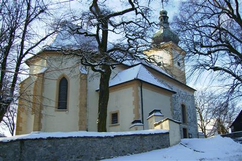 Kostel původně románský z počátku 13 století (jádro lodi a věže), později byl goticky upraven. Barokní přestavba byla završena v roce 1730. Zjištěny zbytky původních maleb z XV. stol. Obnovena malba v presbytáři, představující gotický oltář se sedmi věžemi, se skutečným výklenkem zvaným sakrárium, tj. místo pro odložení náboženských nádob.