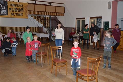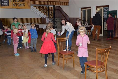 Příjemnou atmosféru navodily melodie z pohádek a různé dětské písničky. Nechyběly ani tanečky a soutěže, ve kterých si děti procvičovaly svoji obratnost. S pomocí maminky se i tomu nejmenšímu soutěžícímu podařilo překonat různé překážky a dostalo se mu sladké odměny, která byla pro účastníky připravena. Příchod Mikuláše doprovázelo několik andělů a čertů. S plným košem sladkostí se Mikuláš vydal vstříc dětem, které za přednesenou básničku odměnil.