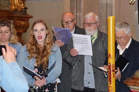 Podvečerní program pokračoval koncertem v místním kostele Nanebevzetí Panny Marie, kde duchovní písně zazpíval známý a oblíbený pěvecký sbor Canto nepomucenum , obohacený o dětské a mužské hlasy. Skupina Profesionálové představila přítomným posluchačům duchovní písně v moderním pojetí. Noc kostelů je oslava, do které se letošní rok zapojilo 1200 kostelů a její počátek , se píše od r. 2009. Zakladatelem těchto aktivit je teolog, pedagog a spisovatel Otto Neubaer, vedoucí Akademie pro dialog a evangelizaci ve Vídni, otec šesti dětí. Přednáší po celé Evropě a věnuje se projektům pro mládež.