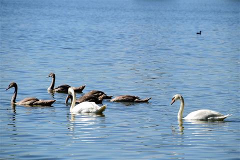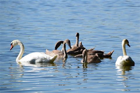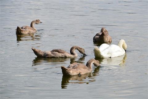 Párek labuťí, hnízdící na myslívském rybníku jsou starostlivými rodiči, kteří s láskou pečují o svoje potomky a učí je všemu potřebnému pro život. Ostražitý labutí tatínek hlídá klid rodiny, aby mláďata dobře prospívala. Přesto, že jsou tažnými ptáky, v mírných podmínkách dokážou přezimovat. Snad se jim u nás bude líbit.