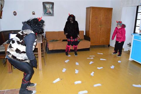 Do ostatních farských prostor se nastěhovalo několik čertů a dětem připravili různé zajímavosti. V čertovské kuchyni se vařily speciality, třeba z nefunkčního mobilu, nebo sušených kuřecích paciček. Čerti v posilovně zkoušeli děti ze základních cviků a na čertím tanečním parketu si děti pořádně zatancovaly. V čertovské dílně si vyzkoušely svojí dovednost zatloukáním hřebíků, řezáním polínek, nebo házením míčků na plechovky. Vše dopadlo dobře bez zraněných prstíků, a tak je čekal poslední úkol - hra v kostky se samotným Luciferem. S razítky nasbíranými do pasu se děti vydaly k Mikuláši pro zaslouženou odměnu.