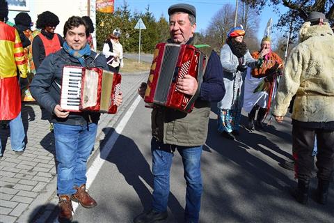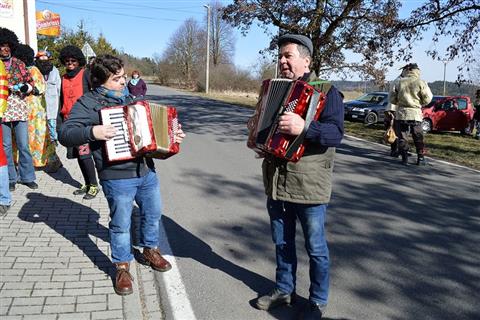 Před kulturním domem v Myslívě se 23. února sešlo třicet pět masek a za doprovodu dvou skvělých harmonikářů procházely obcí.