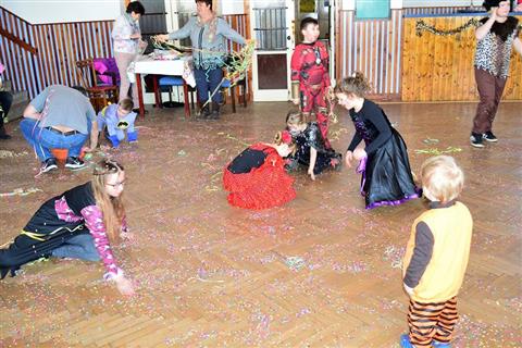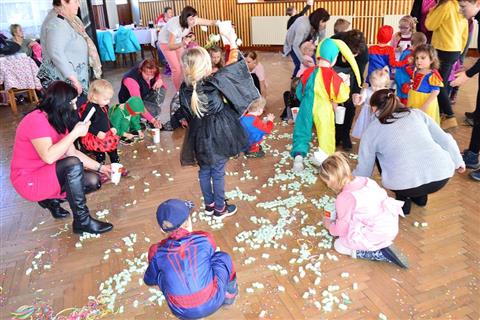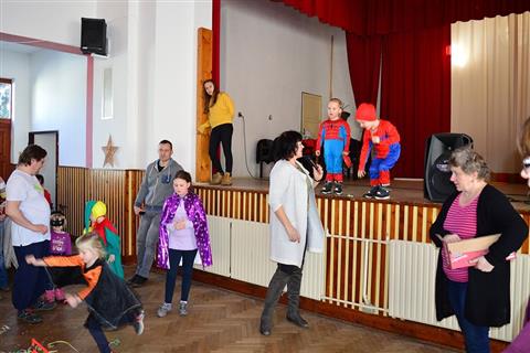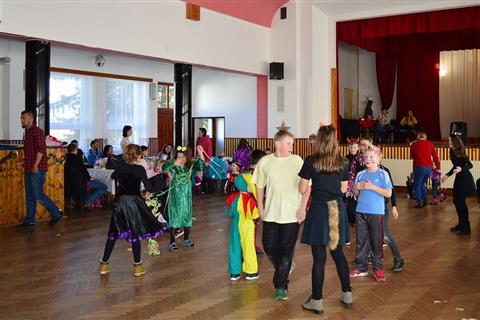 Spidermani, kočky, čerti, motýli, kovbojové, upíři, Sněhurka i Fiona , ti všichni se pěkně vyřádili při různých soutěžích a tanečcích. Novým soutěžním prvkem byla „opičí dráha“, která se na první pohled zdála nesnadná, ale děti si s ní poradily, každý podle svého stylu. Sbírání „jahůdek“ od dvanácti měsíčků šlo také velmi dobře i těm nejmenším . „Já už mám plný kelímek,“ radostně volala princezna a běžela si pro zaslouženou odměnu. Některé děti se osmělily k přednesu básničky, nebo zazpívání písničky, jejich snažení bylo odměněno potleskem.
