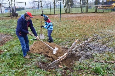 V Myslívě u hřiště se sázely třešně 17.11.2018