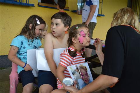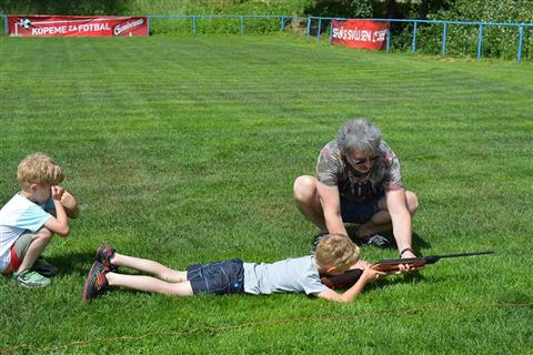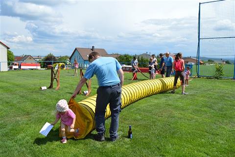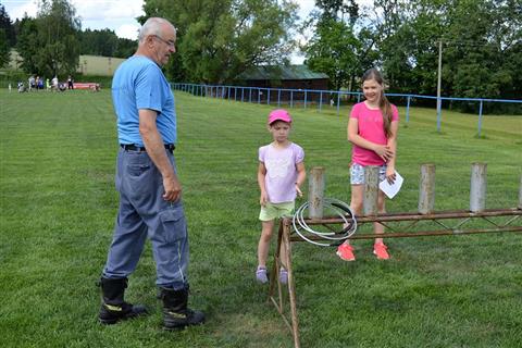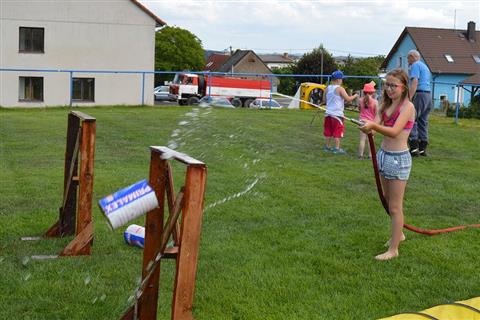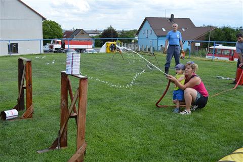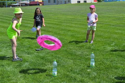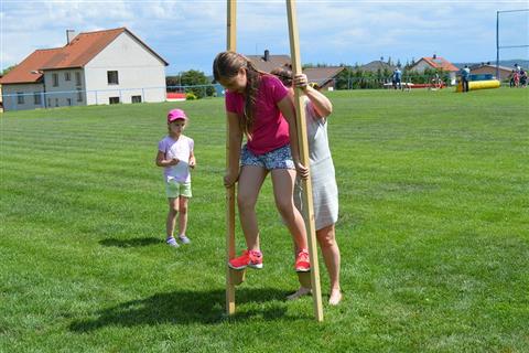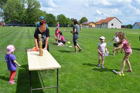 Členové kulturní komise pro ně připravili zábavné sportovní odpoledne se spoustou aktivit. Děti hravě procházely všechny disciplíny, které tu byly pro ně nachystány a za každý výkon obdržely sladkou odměnu spolu s razítkem do sportovního vysvědčení. Kromě házení míčků na cíl, chození na chůdách, házení nafukovacího kruhu, závodění s kočárkem, kopání do fotbalového míče a sprintem mezi tyčkami s míčem, si děti vyzkoušely i střílení ze vzduchovky. Pro bystré hlavičky tu byl připravený přírodní koutek pro určování druhů rostlin a stromů, nebo různé početní úkoly. Také nafukovací hrad se skluzavkou a prolézačkou byl neustále plně obsazen. Místní hasiči připravili pro malé sportovce dlouhý, prolézací tunel a stříkání na plechovky pomocí džberové stříkačky s malou hadicí. Nejvíce se ale děti vyřádily v oblíbené pěně, kterou jim hasiči nastříkali na trávník. Příhodné počasí všem přítomným přálo a program mohl pokračovat opékáním vuřtů. Doslova hitem tohoto odpoledne, se stalo malování na obličej, kterého se zhostila paní Maršálková z Nehodíva. Následně potom běhala po hřišti různá zvířátka a filmoví hrdinové.