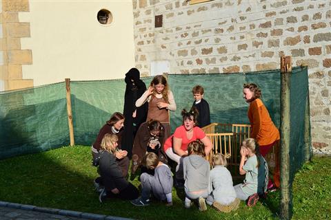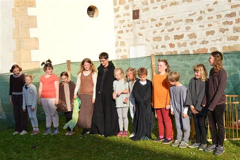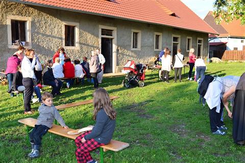 Příznivé počasí umocnilo tento tajemný večer a nebránilo tomu, aby program pokračoval na farské zahradě, kde si děti opékaly vuřty a hrály různé hry.