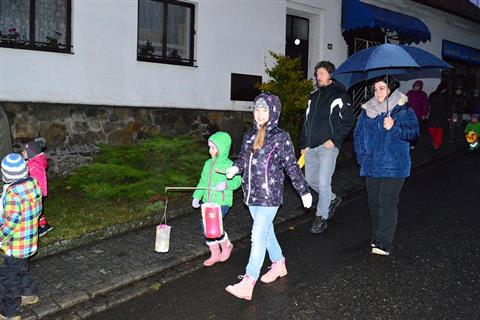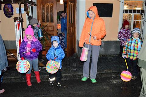 Počasí této akci moc nepřálo, ale děti si za doprovodu rodičů a prarodičů užívaly vyjímečné chvíle, kdy v podvečerním šeru zářily lampionky jako tajemná světýlka. Radost z neobvyklého zážitku jim nezkazily ani drobné závady, které se cestou vyskytly.
