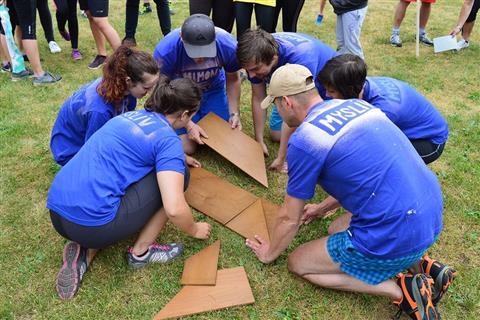 První disciplína ve skládání hlavolamu se zdála být složitá, ale nakonec ji soutěžící družstva zvládla. Trochu obtížnější se zdál soutěžní úkol v spolykání suchého rohlíku,vypití piva (colu) na ex, nebu na lyžích po hladině myslívského koupaliště. Za bouřlivého povzbuzování diváků byl i tento prvek hravě překonán. Stejně zdatně se soutěžící družstva vypořádala s tzv. housenkou a házením plyšové žáby na plechovky.