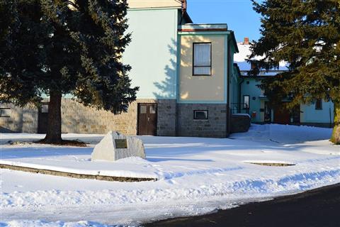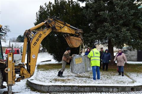 kamene zdobí prostranství před kulturním domem v Myslívě.