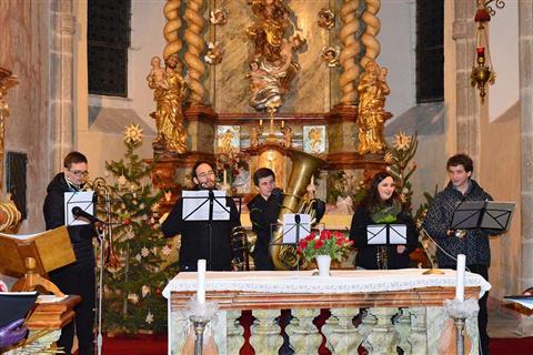 V Žesťovém kvintetu z umělecké školy v Plzni se představili: Jan Pazderník ve hře na tubu, Martin Matas a Alžběta Straková – trubky, František Kubaň a Marek Duda – pozouny. Sváteční nálada byla umocněna vystoupením pěveckého sboru Canto nepomucenum, doprovázeným Petrem Vopaleckým.