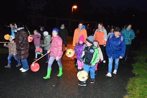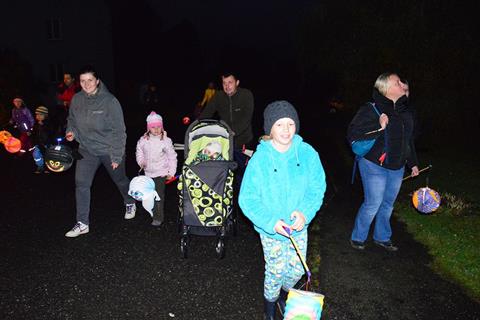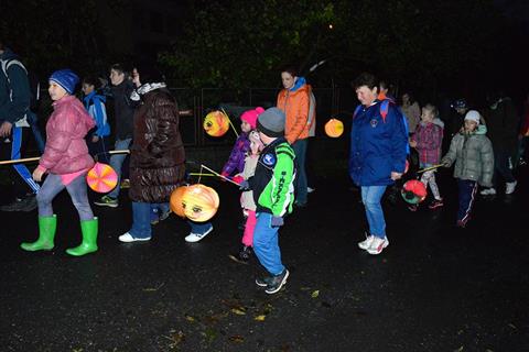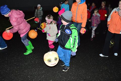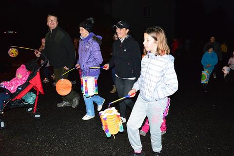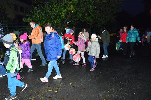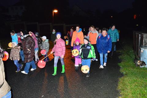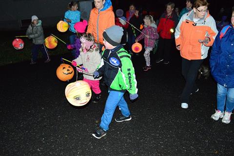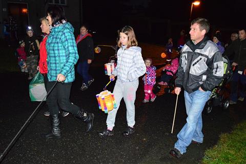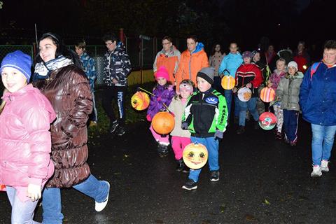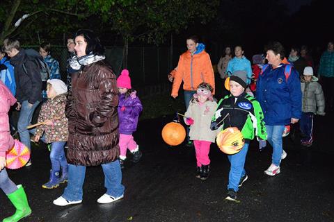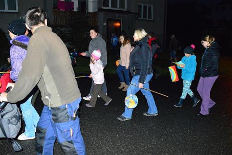 Temný podvečer rozsvítily zářící lampionky dětí procházející Myslívem.