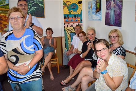 Pouťové slavnosti začaly páteční vernisáží, uskutečněnou v prostorách obecního úřadu, kde svoje obrazy prezentovala skupina malířů Ateliéru K z Nepomucka