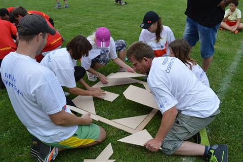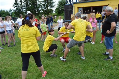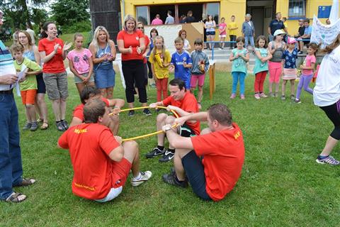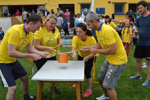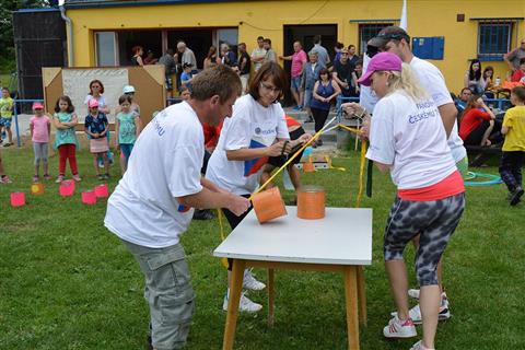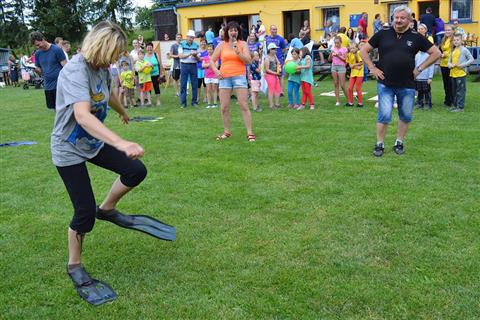 Doběhnout v potápěčských ploutvých do cíle, složit velké puzzlle, nebo postavit pyramidu z plechovek bez dotyku ruky, nejsou snadné úkoly, ale soutěžící družstva na myslívském hřišti se s nimi zdatně vypořádala.