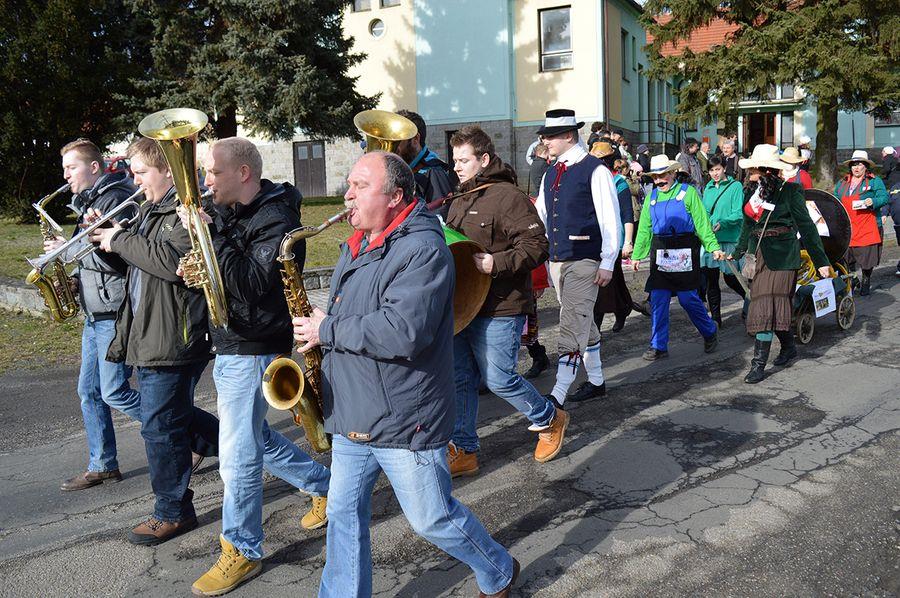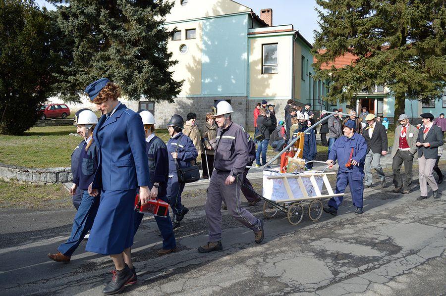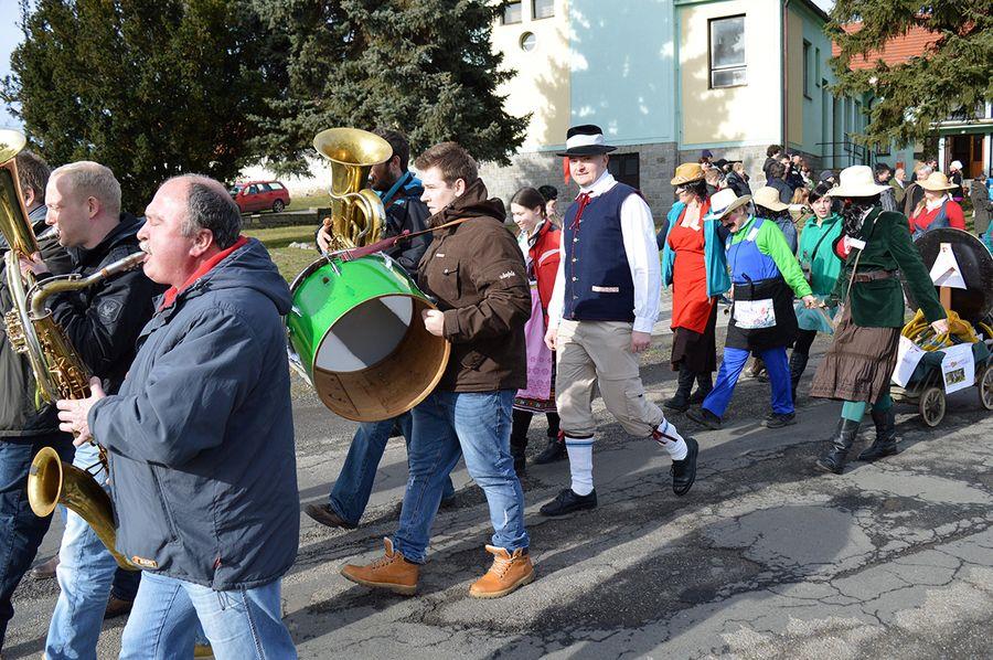 Průvod končil v pozdních odpoledních hodinách, ale zábava ještě pokračovala v kulturním domě, kde k tanci a poslechu hrála kapela Karel. .