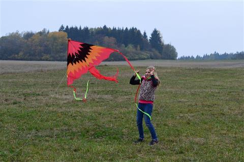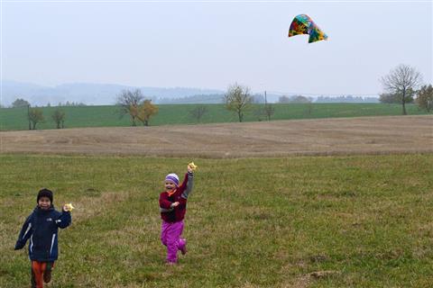 Volný sváteční den oslavily děti v Myslívě s létajícími draky.
