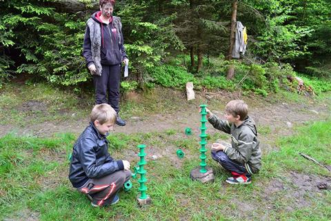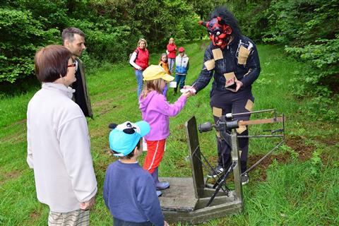 Cestou od koupaliště směrem do lesa čekali na různých stanovištích čerti s připravenými úkoly, ve kterých si děti procvičovaly vědomosti a obratnost. Nebylo lehké udělat kotrmelec směrem do kopce, namalovat obrázek, strefit se do hrnce, uhodnout pohádku z obrázku, nebo přejít široké lano. Větší děti vše hravě zvládly a výborně se bavily, hlavně ve skákání v pytli. „Jé, to je super, můžu ještě jednou?“, volal starší chlapec a čert mu to dovolil. Těm menším pomohli rodiče, nebo čerti a všichni se pěkně vyřádili na čerstvém vzduchu. Stezka pokračovala k dalšímu čertovi s početními úkoly a nakonec čekal Lucifer s velkou váhou, aby si ověřil, kdo zlobil. Děti byly rády, že je Lucifer propustil bez potrestání a těšily se na táborák, který pro ně byl připraven u koupaliště.