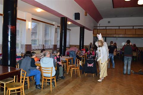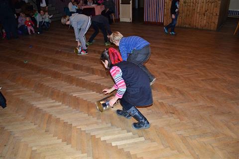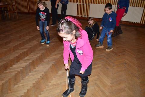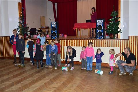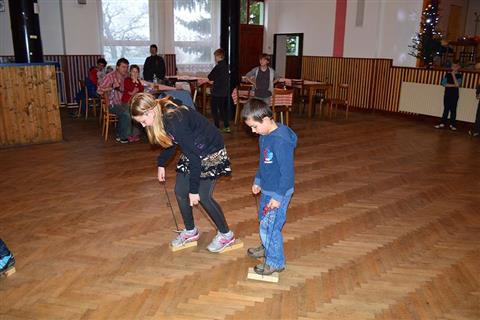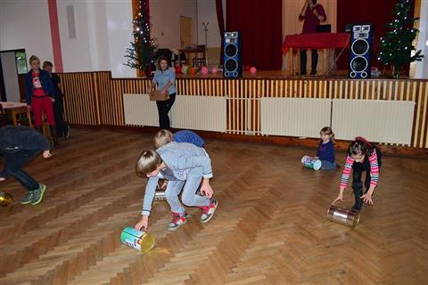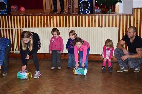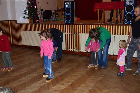 Čekání na Mikuláše bylo zpříjemněno v podobě různých soutěží, jako například válení velkých plechovek, nebo běh ve speciálních dřevácích. Přestávku vyplnil hudební program, o který se opět postarala paní Alena Tyrpeklová.