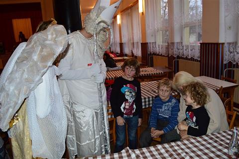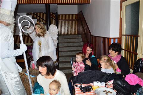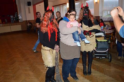 Konečně tu byl dlouho očekávaný Mikuláš v doprovodu Anděla a mohl předat hodným dětem dárečky. V zápětí vběhlo do sálu několik čertů a snažili se ty zlobivé děti odnést do pekla. Mikuláš s Andělem celou situaci uklidnili, všem dětem rozdali sladkosti a společně se s nimi vyfotili. Sváteční odpoledne se opět vydařilo, děti se pěkně vyřádili a rodiče se pobavili.