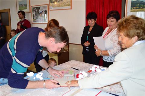 Po uvítání všech přítomných zazpívaly několik písní děti z Loužné, pod vedením paní Jany Vopalecké. Rodiče svojí přítomnost potvrdili podpisem do pamětní knihy a jejich ratolesti obdržely malý dárek.