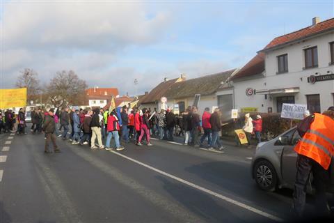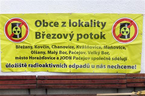 Protestující upozorňovali na diskriminační rozhodování Vlády a řady politiků v problematice ukládání vysoce radioaktivního odpadu.